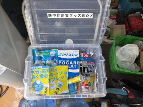 6/1から施行された熱中症対策!安パト当日は最高気温34°あり現場での熱中症対策・体制整備などを重点的にチェック。